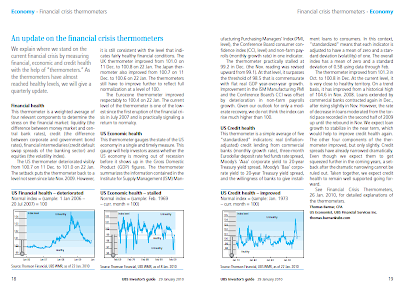 We explain where we stand on thecurrent financial crisis by measuringfinancial, economic and credit healthwith the help of “thermometers.” Asthe thermometers have almostreached healthy levels, we will give aquarterly update.